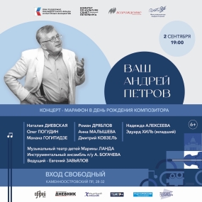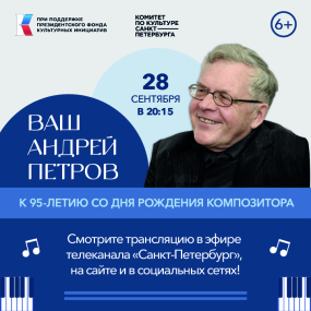 Одной из замечательных традиций стал концерт «Петербург Андрея Петрова», который проходит в конце мая в рамках празднования Дня рождения города на Неве. Каким бы ни был сценарий этого музыкального праздника, в котором принимают участие ведущие артисты петербургской эстрады, неизменны остаются главные герои действия – Город, вдохновивший композитора на создание музыки, и Композитор, воспевший свой родной город всем своим творчеством.